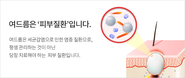 여드름은 피부 질환이며, 치료의 적절한 시기를 놓치면 흉터가 됩니다.