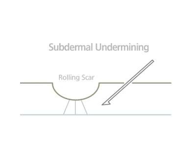 특수한 모양의 바늘을 이용하여 진피와 피하지방의 경계 부위에 피부를 끌어 당기고 있는 흉터 부위에 섬유질을 끊어내는 치료 방법입니다.