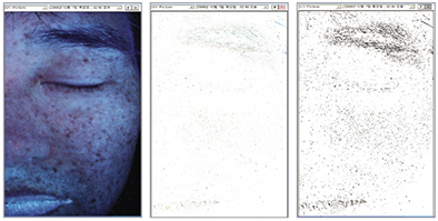 일반광선에서 반사광을 제거한 광선으로 피부표면의 색소질환을 왜곡 없이 보여줍니다.