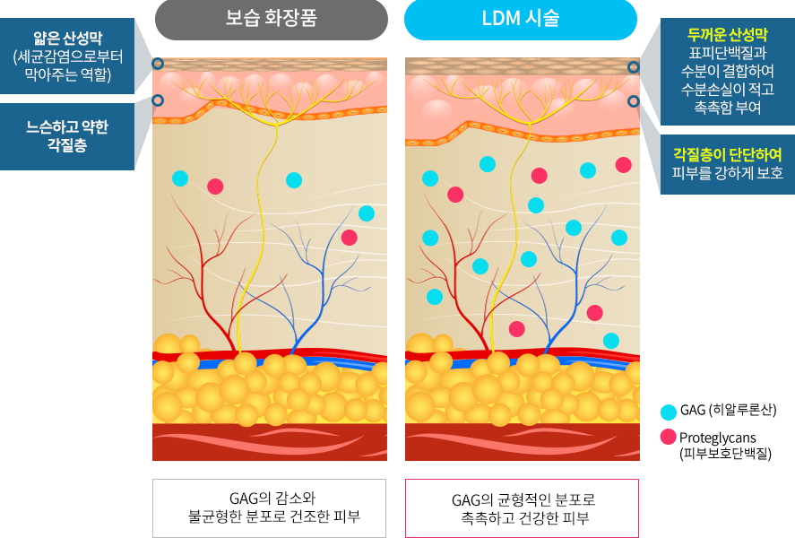 고밀도 초음파 에너지를 이용한 타이트닝 방법으로 노화되어 둔화된 세포의 움직임에 고밀도 진동 에너지를 부가하여 젊고 건강한 피부 환경으로 만들어 줍니다. LDM 타이트닝은 피부 속 세포의 정상적인 순환을 촉진시켜 외적으로 건강하고 아름다운 피부를 가꾸는 데 도움을 줍니다.